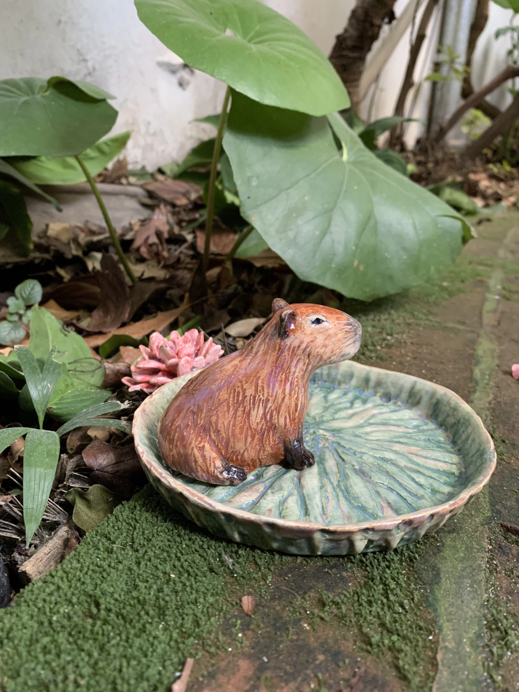 DESPOJADOR, le dicen, pero es un guarda -tesoros en la mesita de noche ... o porta mimos ... tesoros también son ellos nuestros Carpinchos los roedores más grandes y simpáticos de Sudamérica.