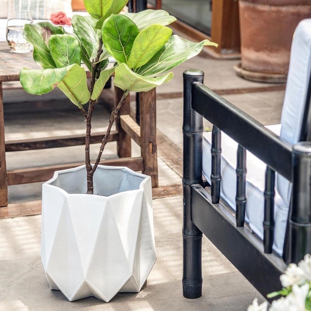 Inspirada en la famosa técnica de plegado japonés, esta maceta esta integramente realizada en cerámica esmaltada.